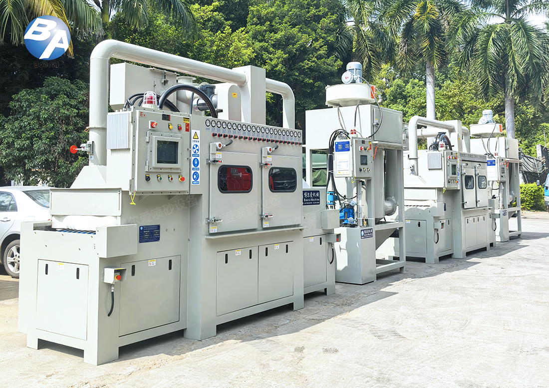 输送系统: 自动将工件送入、送出喷砂室,实现连续或批量处理,大幅减少工件装夹、搬运的等待时间。