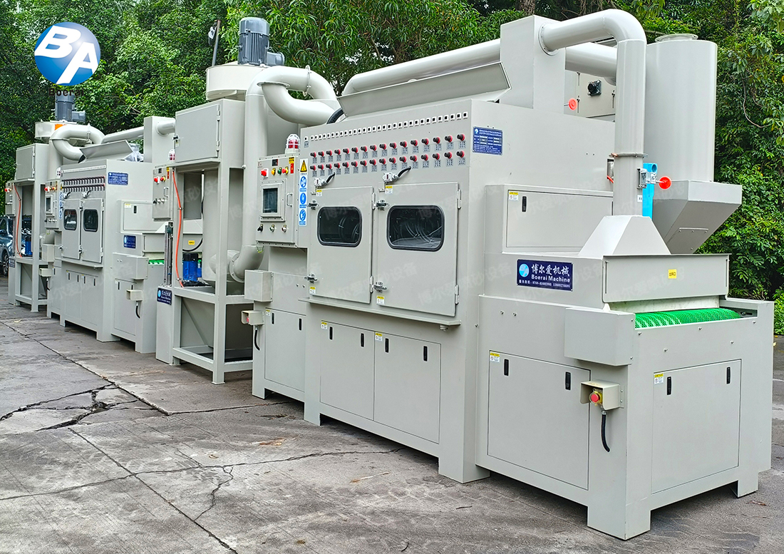 该机型采用输送带自动传送工件,能实现24小时连续作业。工人只需上下料,设备即可自动完成喷砂,处理速度快,特别适合大批量生产。